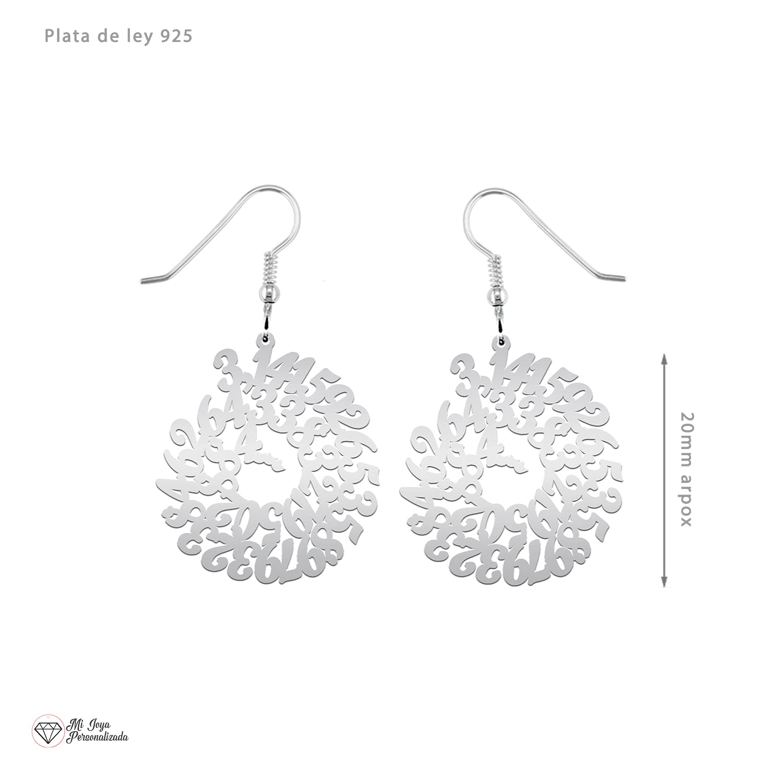 • Estos pendientes de plata con diseño del número Pi son una joya única y diferente, ideal para quienes buscan un complemento con personalidad. Su forma circular está formada por la secuencia infinita de cifras del número Pi, convirtiéndolos en un símbolo perfecto de eternidad, conocimiento y amor por las matemáticas.