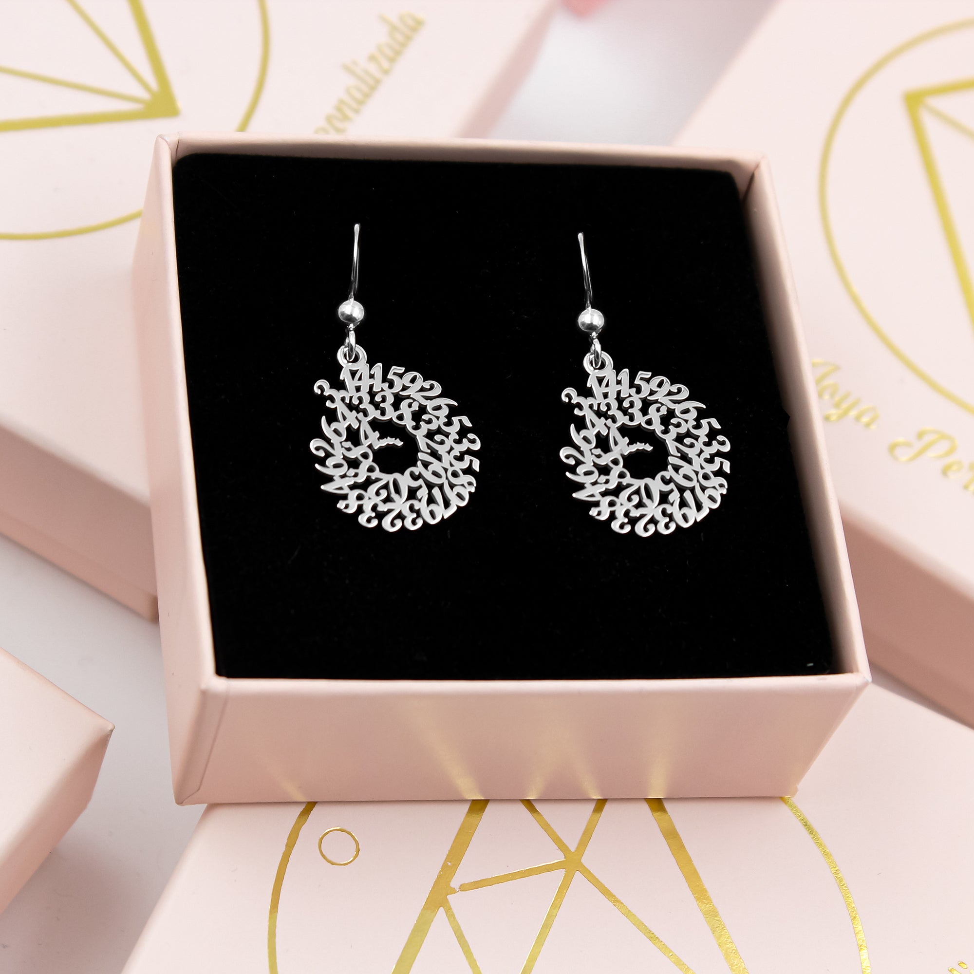 Pendientes de plata con diseño del número Pi – Joyería original para amantes de las matemáticas